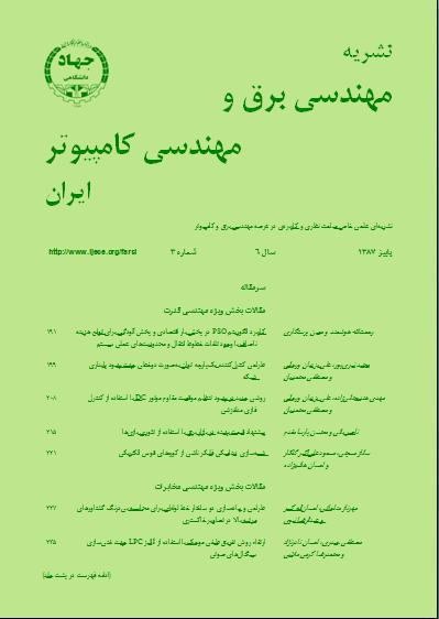 فهرست مقالات دسترسی آزاد مقاله صفحه چکیده متن کامل 1 - الگوريتم PSO در پخش بار اقتصادي و پخش آلودگي براي توابع هزينه ناصاف با وجود تلفات خطوط انتقال و محدوديتهاي عملي سيستم رحمتالله هوشمند معين پرستگاري 20.1001.1.16823745.1387.6.15.1.5 دسترسی آزاد مقاله صفحه چکیده متن کامل 2 - طراحي کنترلکننده يکپارچه توان بهصورت دوخطي جهت بهبود پايداري شبکه مجید نیریپور علی یزدیان ورجانی مصطفی محمدیان 20.1001.1.16823745.1387.6.15.2.6 دسترسی آزاد مقاله صفحه چکیده متن کامل 3 - روشي جديد در بهبود تنظيم موقعيت مقاوم موتور DC با استفاده از کنترل فازي مدلغزشي مهدی هنديجانيزاده علی یزدیان ورجانی مصطفی محمدیان 20.1001.1.16823745.1387.6.15.3.7 دسترسی آزاد مقاله صفحه چکیده متن کامل 4 - پيشنهاد قيمت بهینه در بازار برق با استفاده از تئوری بازیها ناصر بائی محسن پارسامقدم 20.1001.1.16823745.1387.6.15.4.8 دسترسی آزاد مقاله صفحه چکیده متن کامل 5 - شبيهسازي ديناميکي فليکر ناشي از کورههاي قوس الکتريکي ساناز مسچی مسعود علياکبر گلکار احسان هاشمزاده 20.1001.1.16823745.1387.6.15.5.9 دسترسی آزاد مقاله صفحه چکیده متن کامل 6 - طراحی و پيادهسازی دو ساختار خط لولهای برای محاسبه بیدرنگ گشتاورهای مرتبه بالا در تصاوير خاکستری مهرناز مناجاتی احساناله کبیر عبدالرضا نبوي 20.1001.1.16823745.1387.6.15.6.0 دسترسی آزاد مقاله صفحه چکیده متن کامل 7 - ارتقاء روش تفریق طیفی موجک با استفاده از آنالیز LPC جهت غنیسازی سیگنالهای صوتی مصطفی حیدری احسان نادرنژاد محمدرضا کرمی ملایی 20.1001.1.16823745.1387.6.15.7.1 دسترسی آزاد مقاله صفحه چکیده متن کامل 8 - شبيهسازی تأثير ريزش باران بر انتشار امواج راديويی در باندهای Ku و Ka عباسعلی لطفی نیستانک 20.1001.1.16823745.1387.6.15.8.2 دسترسی آزاد مقاله صفحه چکیده متن کامل 9 - طبقهبندی تودههای سرطانی سینه با استفاده از ویژگیهای ریختشناسی توده و ويژگيهاي بافتی تصاویر سونوگرافی در ناحيه داراي توده و نواحي اطراف آن رستمعلي جهانديده حمید بهنام نسرین احمدينژاد 20.1001.1.16823745.1387.6.15.9.3