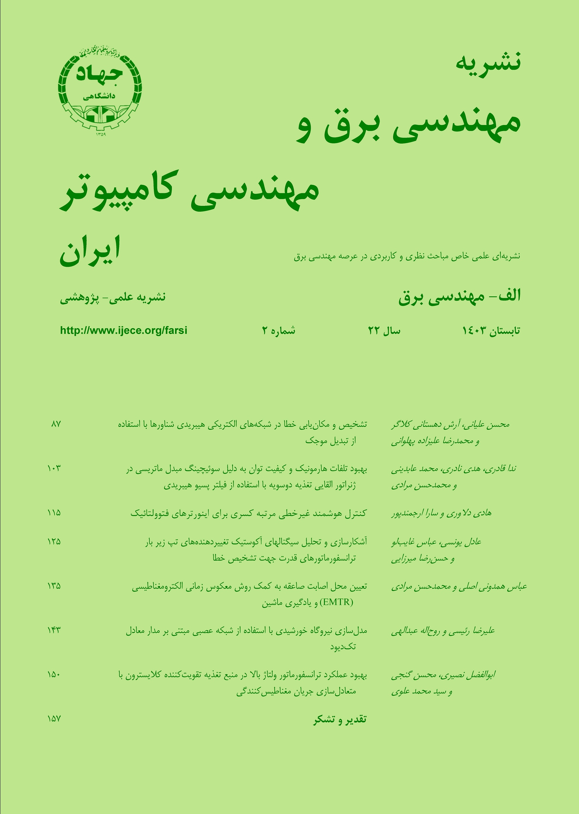 فهرست مقالات دسترسی آزاد مقاله صفحه چکیده متن کامل 1 - تشخیص و مکانیابی خطا در شبکههای الکتریکی هیبریدی شناورها با استفاده از تبدیل موجک محسن علیانی آرش دهستانی کلاگر محمدرضا علیزاده پهلوانی دسترسی آزاد مقاله صفحه چکیده متن کامل 2 - بهبود تلفات هارمونیک و کیفیت توان به دلیل سوئیچینگ مبدل ماتریسی در ژنراتور لقایی تغذیه دوسویه با استفاده از فیلتر پسیو هیبریدی ندا قادری هدی نادری محمد عابدینی محمدحسن مرادی دسترسی آزاد مقاله صفحه چکیده متن کامل 3 - کنترل هوشمند غیرخطی مرتبه کسری برای اینورترهای فتوولتائیک هادی دلاوری سارا ارجمندپور دسترسی آزاد مقاله صفحه چکیده متن کامل 4 - آشکارسازی و تحليل سیگنالهای آکوستيک تغییردهندههای تپ زير بار ترانسفورماتورهای قدرت جهت تشخيص خطا عادل یونسی عباس غایب لو حسن رضا میرزائی دسترسی آزاد مقاله صفحه چکیده متن کامل 5 - تعیین محل اصابت صاعقه به کمک روش معکوس زمانی الکترومغناطیسی(EMTR) و یادگیری ماشین عباس همدونی اصلی محمدحسن مرادی دسترسی آزاد مقاله صفحه چکیده متن کامل 6 - مدلسازی نیروگاه خورشیدی با استفاده از شبکه عصبی مبتنی بر مدار معادل تکدیود علیرضا رئیسی روح اله عبداللهی دسترسی آزاد مقاله صفحه چکیده متن کامل 7 - بهبود عملکرد ترانسفورماتور ولتاژ بالا در منبع تغذیه تقویتکننده کلایسترون با متعادلسازی جریان مغناطیسکنندگی ابوالفضل نصیری محسن گنجی سید محمد علوی