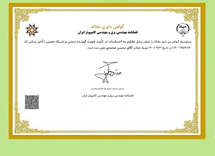 ضمن تشکر از این همکاران ارجمند بدینوسیله به اطلاع می رساند که داوران محترم نشریه مهندسی برق و مهندسی کامپیوتر می توانند نسبت به اخذ گواهینامه داوری هر مقاله از گزینه "گواهی مقاله" در بخش داوری اقدام فرمایند.